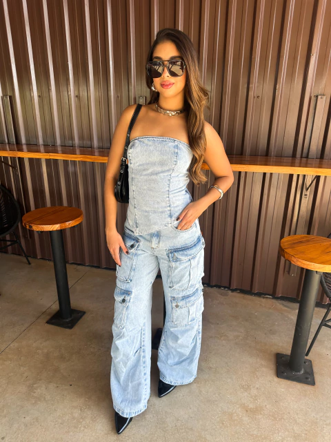 Calça Cargo Utility Jeans Claro